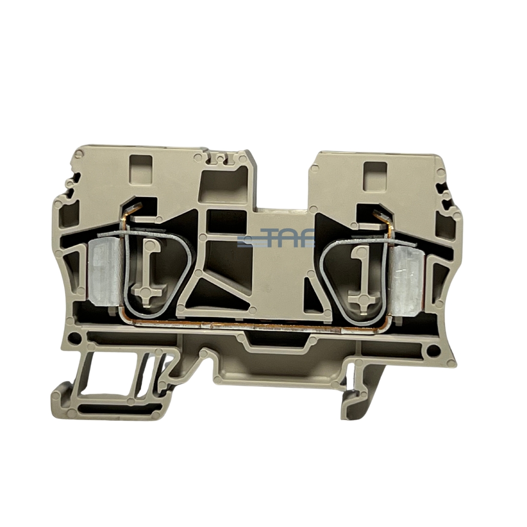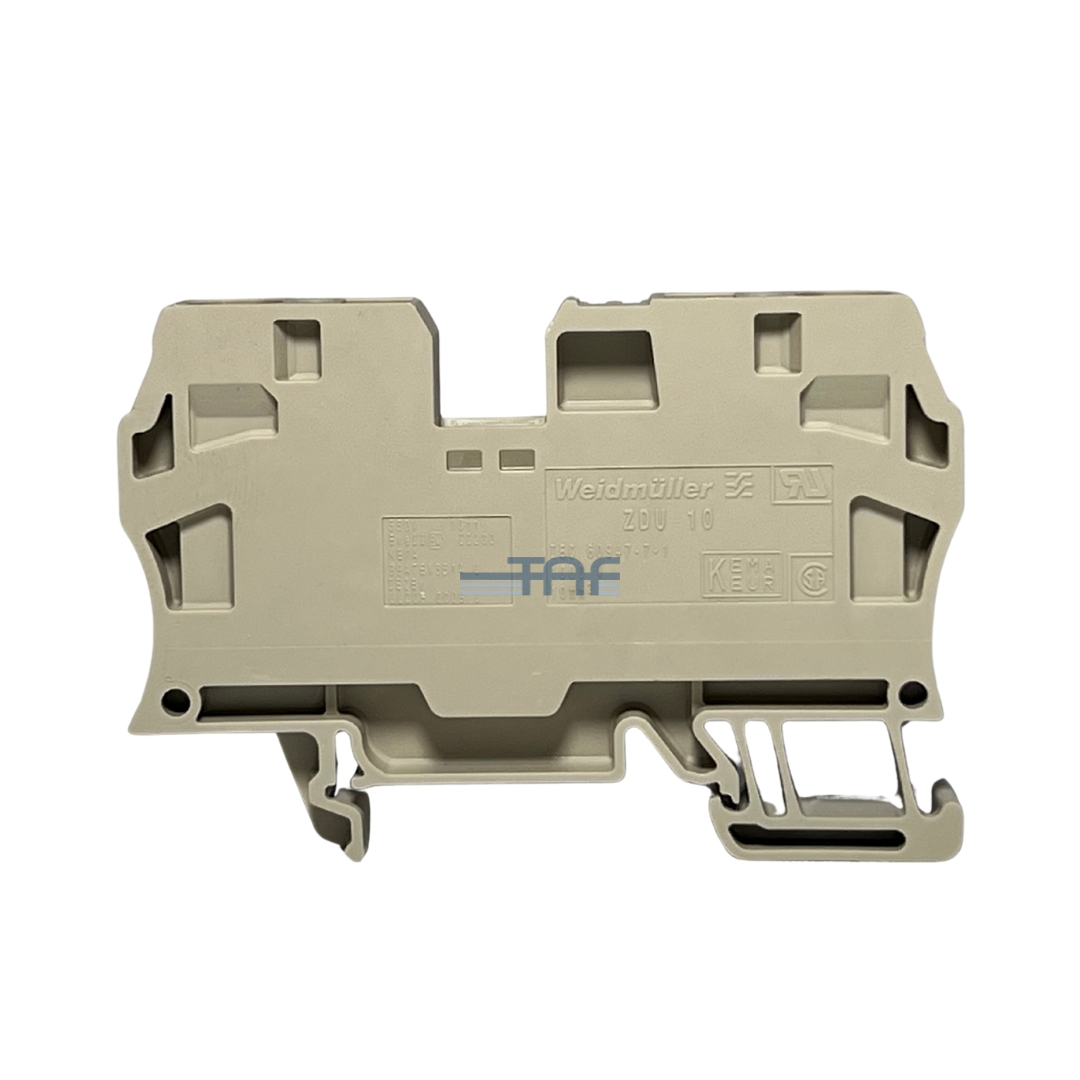 بلوک ترمینال ریلی Weidmüller ZDU 10 مدل 1746750000 یک بلوک ترمینال عبوری با اتصال گیرهفنری (Tension Clamp) است که برای اتصال ایمن هادیها در تابلوهای برق، سیستمهای کنترل و تجهیزات صنعتی طراحی شده است. این ترمینال تکسطحی دارای دو نقطه اتصال است و با طراحی جمعوجور، نصب و سیمکشی سریع در فضاهای محدود را ممکن میسازد.