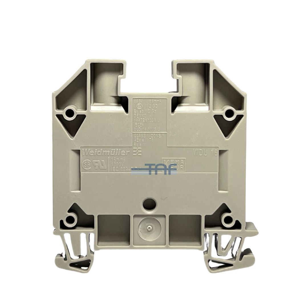 بلوک ترمینال WDU 16 به رنگ قهوه‌ای و با طراحی تک‌سطحی در سری WDU عرضه می‌شود. این محصول از سیم‌هایی با گیج 14 تا 6 AWG و سطح مقطع کابل 16 میلی‌متر مربع پشتیبانی می‌کند و روش خاتمه آن پیچی است. این ترمینال فاقد فیوز بوده، دارای ولتاژ نامی 690 ولت و جریان نامی 76 آمپر می‌باشد. حداقل دمای عملیاتی 50- درجه سانتی‌گراد و حداکثر دمای عملیاتی 120+ درجه سانتی‌گراد است. این محصول دارای گواهینامه ATEX بوده و با استانداردهای CCC، CE، CSA، EAC، IEC و UKCA مطابقت دارد.