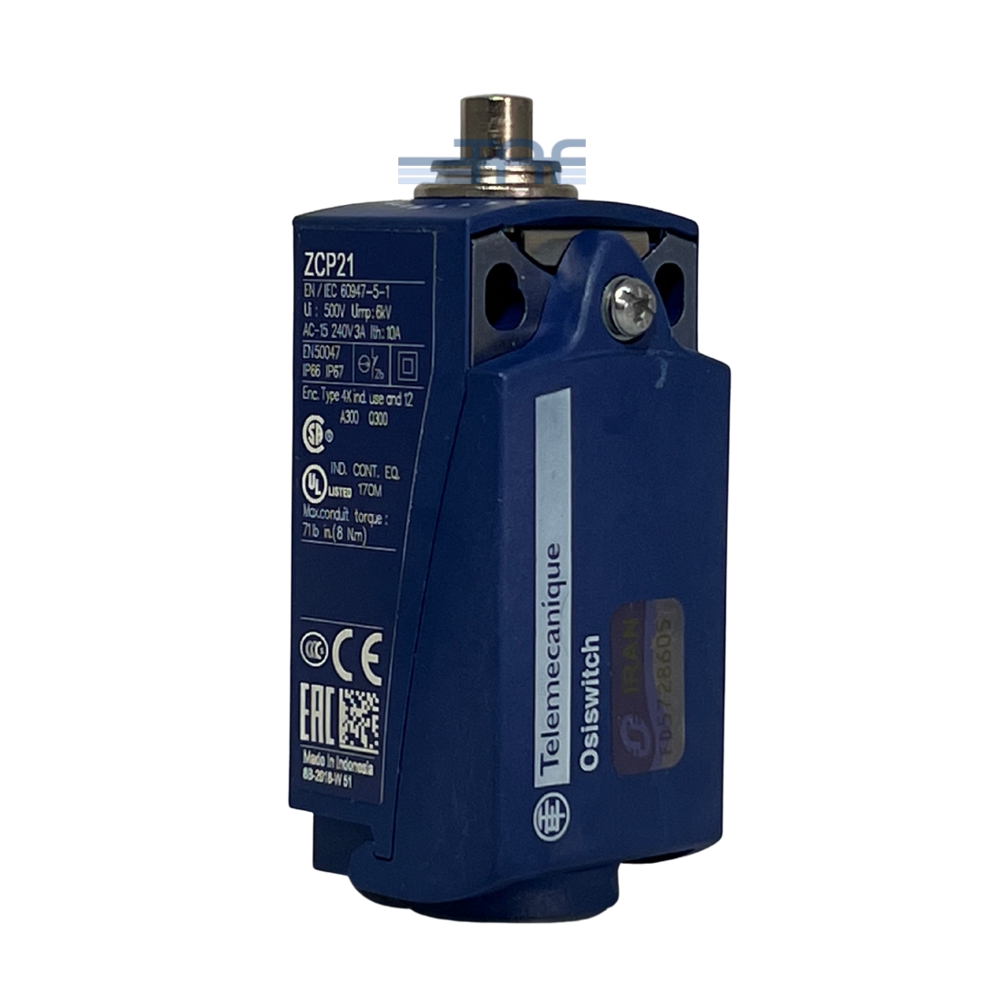 لیمیت سوئیچ XCKP2110P16 از سری Telemecanique / XC Special شرکت اشنایدر الکتریک فرانسه است و وظیفه تبدیل حرکت مکانیکی به سیگنال کنترل الکتریکی را بر عهده دارد. این محصول دارای پیستون فلزی (metal-end plunger) با بازگشت فنری است که در تماس با قطعات متحرک، وضعیت کنتاکت‌ها را تغییر می‌دهد. طراحی جمع‌وجور و ماژولار این سوئیچ نصب و تعمیر و نگهداری آن را ساده می‌کند.