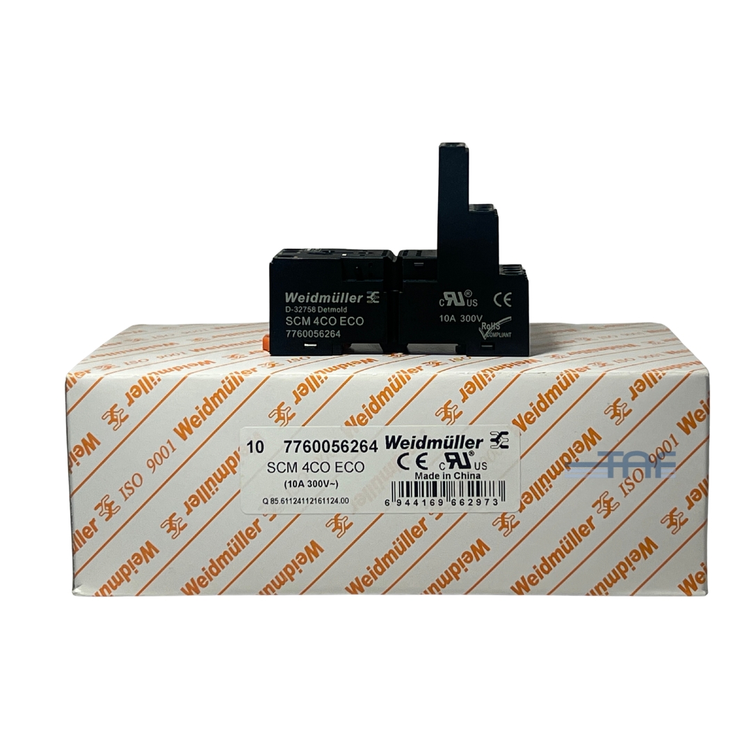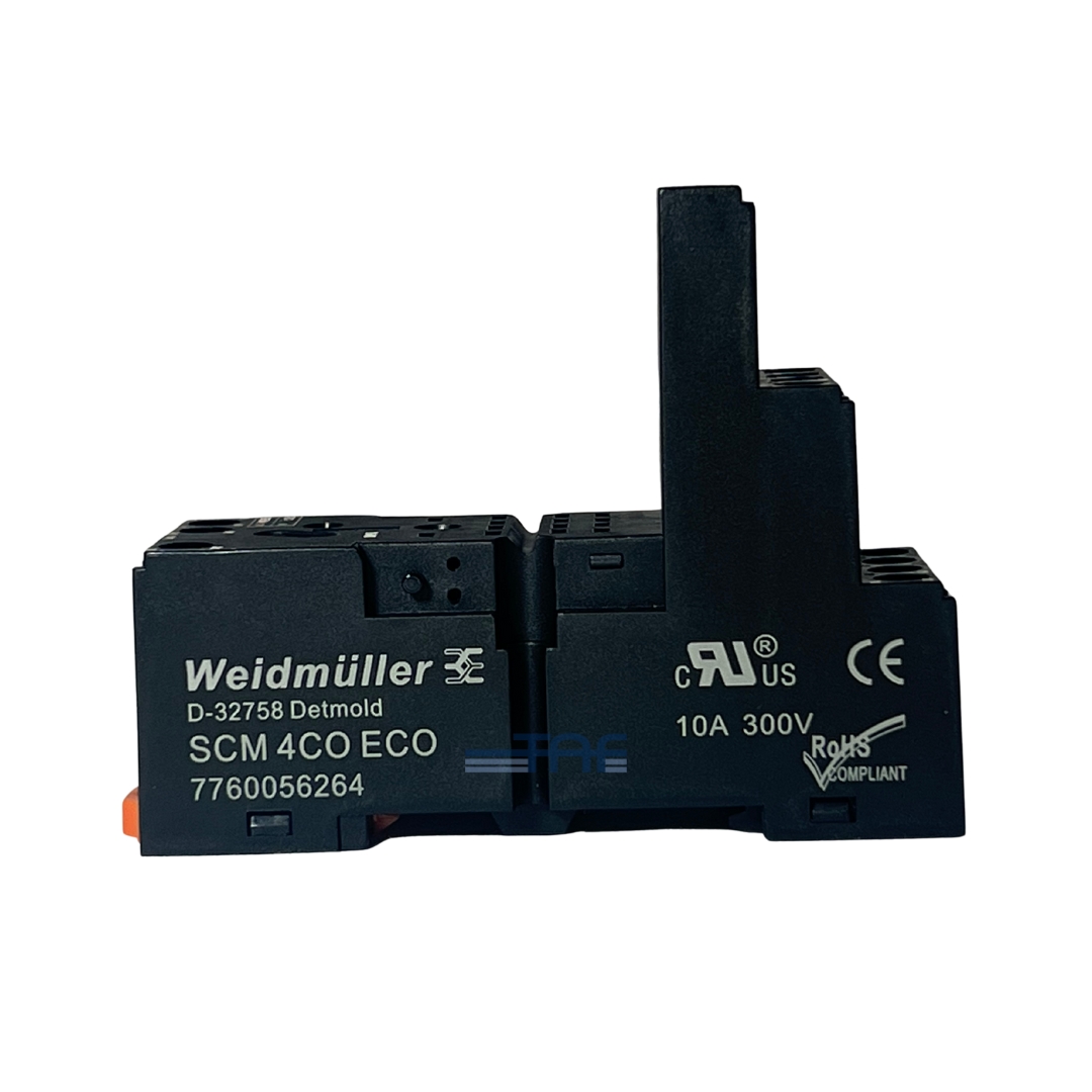 سوکت رله SCM 4CO ECO با پارتنامبر 7760056264 از شرکت وایدمولر (Weidmüller) یک پایه استاندارد صنعتی برای نصب رلههای سری D‑Series DRM است. این پایه/سوکت بهگونهای طراحی شده که رلههای پلاگ این را بهصورت ایمن و قابل تعویض روی ریل DIN قرار دهد و اتصال الکتریکی پایدار بین رله و مدار فرمان برقرار کند.