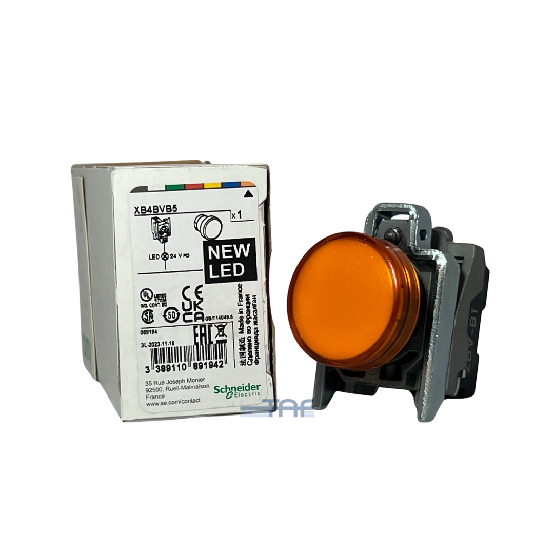 چراغ سیگنال اشنایدر فلزی نارنجی با LED و ولتاژ 24 ولت AC/DC