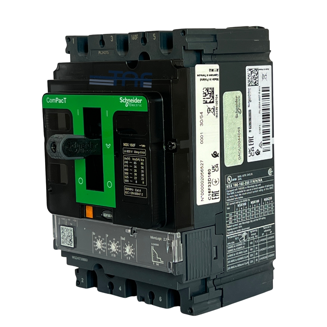 قدرت قطع نهایی (Icu) این کلید برابر با 32 کیلوآمپر در ولتاژ 415 ولت AC و فرکانس 50/60 هرتز است و ولتاژ عملیاتی نامی (Ue) آن 690 ولت AC می‌باشد. جریان نامی این مدل 160 آمپر است و با واحد تریپ حرارتی-مغناطیسی (TM-D) ارائه می‌شود. بخش حرارتی این واحد قابل تنظیم بوده و حفاظت در برابر اضافه بار طولانی‌مدت را فراهم می‌کند، در حالی که بخش مغناطیسی غیرقابل تنظیم، مسئول قطع سریع مدار در زمان اتصال کوتاه است.