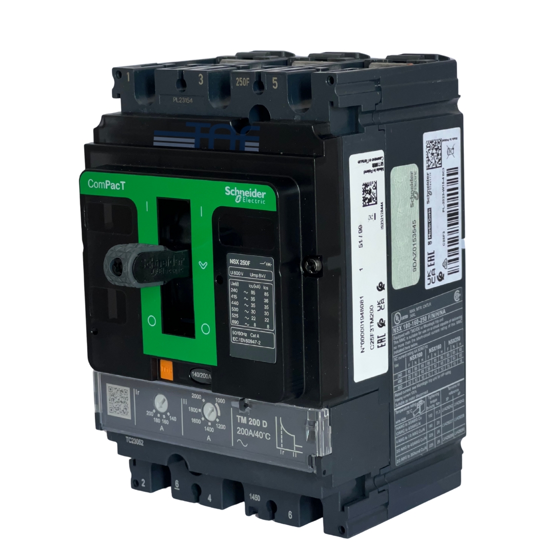 کلید اتوماتیک اشنایدر الکتریک با کد فنی C25F3TM200 یکی از تجهیزات حفاظتی پیشرفته سری NSX است که برای حفاظت مدارهای سه فاز طراحی شده و در سطح ولتاژ 415 ولت AC و فرکانس 50/60 هرتز مورد استفاده قرار میگیرد. ولتاژ عملیاتی نامی (Ue) این کلید 690 ولت AC است و از قابلیت تحمل ولتاژ عایق تا 800 ولت برخوردار است. این ویژگی تضمین میکند که تا این میزان ولتاژ، شکست عایقی رخ ندهد و همچنین کلید قادر به تحمل ولتاژ ضربه نامی 8 کیلوولت میباشد.