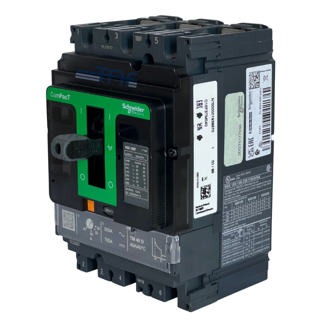 ولتاژ عملیاتی نامی (Ue) این محصول 690 ولت AC بوده و به واحد تریپ حرارتی-مغناطیسی (TMD) با جریان نامی 40 آمپر مجهز است. این واحد تریپ، حفاظت قابل تنظیم در برابر اضافه بار حرارتی و حفاظت غیرقابل تنظیم در برابر اتصال کوتاه (مغناطیسی) را فراهم میکند.